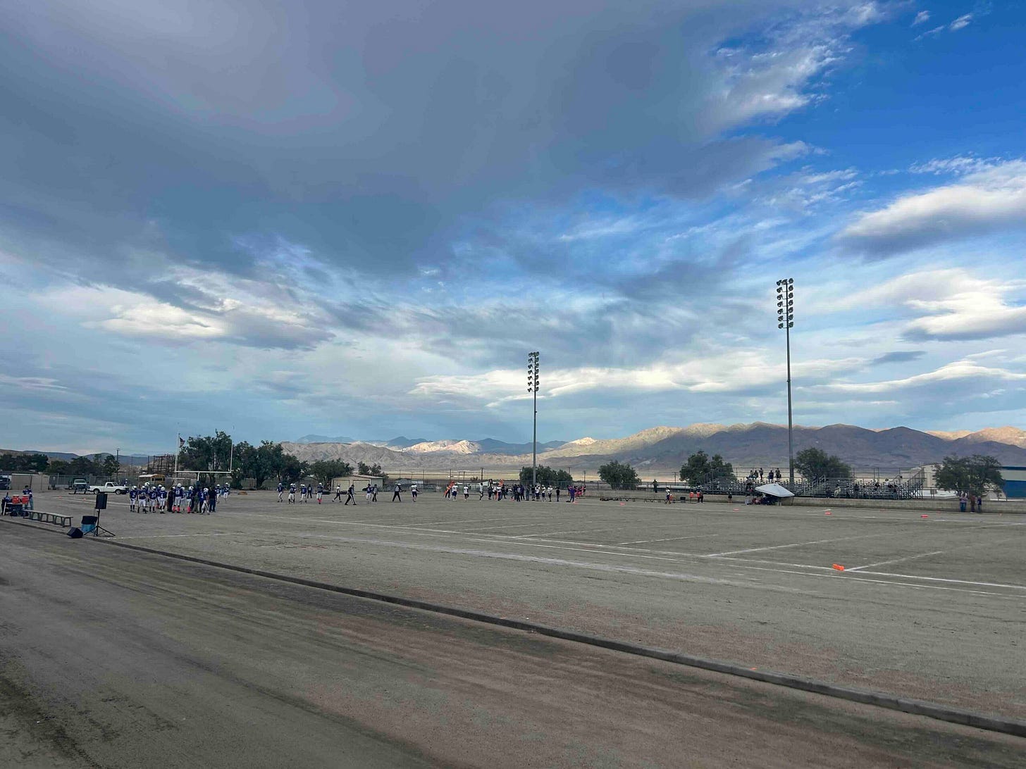 It was almost the end of the second quarter. Dust devils whirled on the field. The dry lake bed shimmered, and I could see the hazy outline of the Trona Pinnacles in the distance, a collection of tufa spires that rise up from the desert like otherworldly sentinels. I tried to pick out the canyons in the mountains across the Searles Valley. Hidden springs and wild burros. A pair of black ravens coasted in, riding the thermals, gliding above the game like they were watching it.